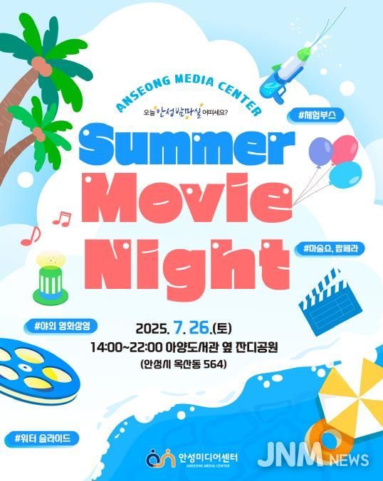 제이앤엠뉴스 | 안성미디어센터가 주최·주관하는 ‘2025 안성미디어센터 Summer Movie Night’이 오는 7월 26일 오후 2시, 아양도서관 옆 잔디공원(아양2호근린공원)에서 열린다. 이번 행사는 여름방학을 맞은 가족 단위 시민들이 함께 어울릴 수 있는 미디어 축제로 기획됐다.