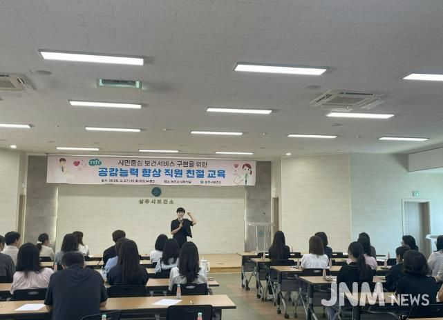 제이앤엠뉴스 | 상주시보건소는 8월 27일 2회에 걸쳐 보건소 전직원을 대상으로 시민중심 보건서비스를 구현하기 위한 ‘공감능력 향상 직원 친절교육’을 실시했다.
