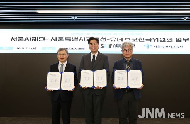 제이앤엠뉴스 | 서울AI재단은 9월 1일 오전 10시, 서울AI스마트시티 센터에서 서울특별시교육청, 유네스코한국위원회과 함께 책임 있는 AI 활용을 위한 업무협약(MOU)을 체결했다.