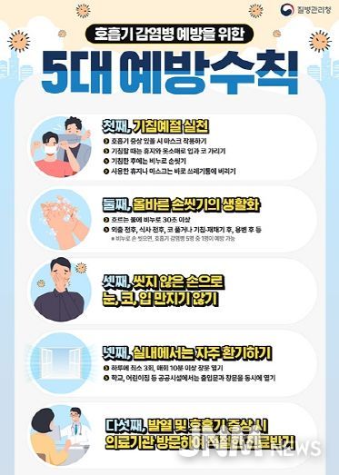 이를 예방하기 위해서는 ▲인플루엔자 예방접종 ▲기침 예절 실천 ▲올바른 손 씻기의 생활화 ▲씻지 않은 손으로 눈, 코, 입 만지지 않기 ▲실내 자주 환기하기 ▲발열, 기침 등 호흡기 증상 발현 시 신속히 의료기관을 방문해 적절한 진료 받기 등 예방수칙을 철저히 준수하는 것이 중요하다.