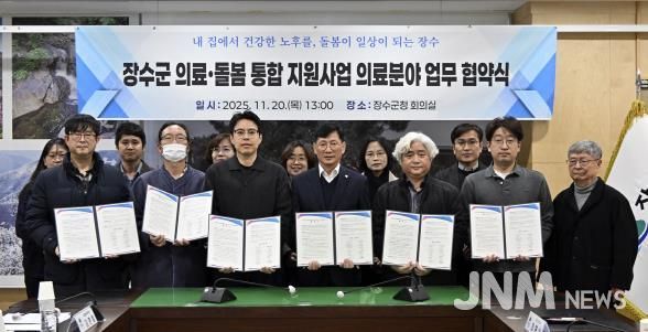 최훈식 장수군수는 “이번 협약은 민간의 전문성과 행정의 공공성을 결합해 군민이 체감할 수 있는 통합 돌봄 모델을 실현하는 의미있는 출발”이라며 “협약을 시작으로 군민 누구도 소외되지 않도록 촘촘한 복지망을 구축하고 건강하고 행복한 삶을 누릴 수 있도록 지속적으로 지원하겠다”고 밝혔다.
