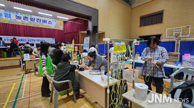 이날 백구에서 운영된 왕진버스에는 원광대학교, 대자인병원 등 의료 관계자 20여 명이 참여했으며, 300여 명의 어르신을 대상으로 혈압, 혈당 등 기초검사를 비롯해 구강검진 및 보건교육, 검안 및 돋보기 처방 등 농업인을 위한 맞춤형 검진서비스를 제공했다.