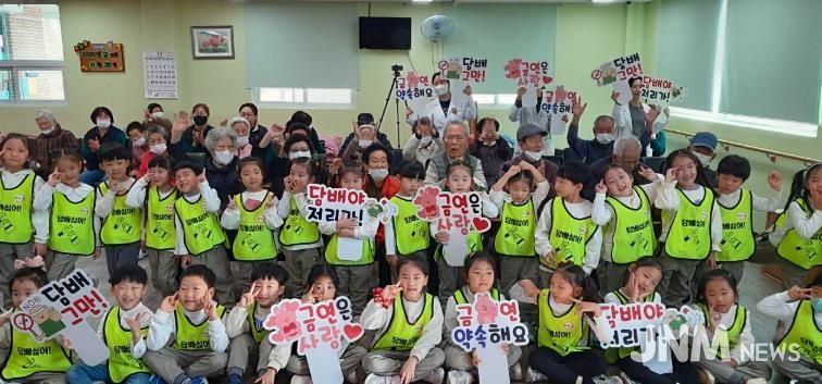제이앤엠뉴스 | 거창군 보건소는 지난 28일, 중동어린이집 원아와 교사 30여 명이 거창효노인통합지원센터 어르신들을 대상으로 ‘꾸러기금연도우미’ 캠페인을 진행했다.