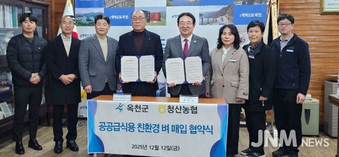 제이앤엠뉴스 | 옥천군은 12일 청산농업협동조합과 함께 지역에서 생산된 친환경 벼 매입 및 공공급식 친환경 쌀 공급을 위한 협약을 체결했다.