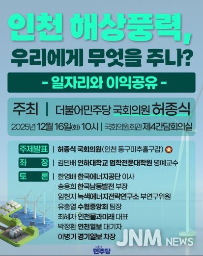 제이앤엠뉴스 | 인천 앞바다에서 추진 중인 대규모 해상풍력 사업을 지역 일자리와 시민 소득 증대로 연결하기 위한 공론의 장이 국회에서 열린다.