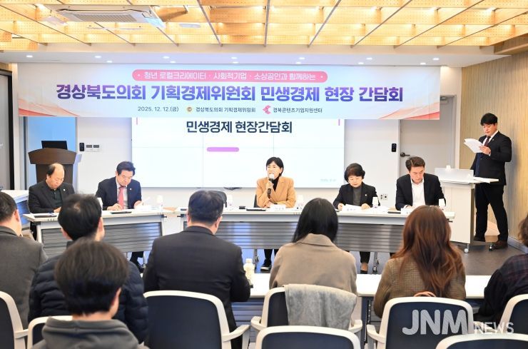제이앤엠뉴스 | 경상북도의회 기획경제위원회는 12월 12일 포항 경북콘텐츠기업지원센터에서 지역 경제의 허리인 청년 창업가, 사회적기업, 소상공인들과 만나 현장의 생생한 목소리를 청취하고 실질적인 정책 대안을 모색했다.