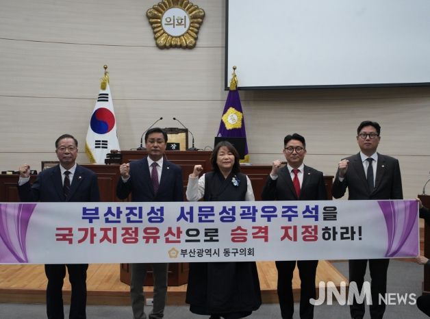 제이앤엠뉴스 | 부산광역시 동구의회는 제334회 정례회 제3차 본회의에서 부산진성 서문성곽우주석의 국가지정유산(보물) 승격을 촉구하는 건의안을 채택했다고 밝혔다. 이번 건의안은 부산진성 서문 양쪽 돌기둥에 새겨진 “남요인후(南徼咽喉), 서문쇄약(西門鎖鑰)” 명문의 역사·학술·상징적 가치를 국가 차원에서 인정하고 지정 절차를 조속히 추진할 것을 촉구하는 내용이다.