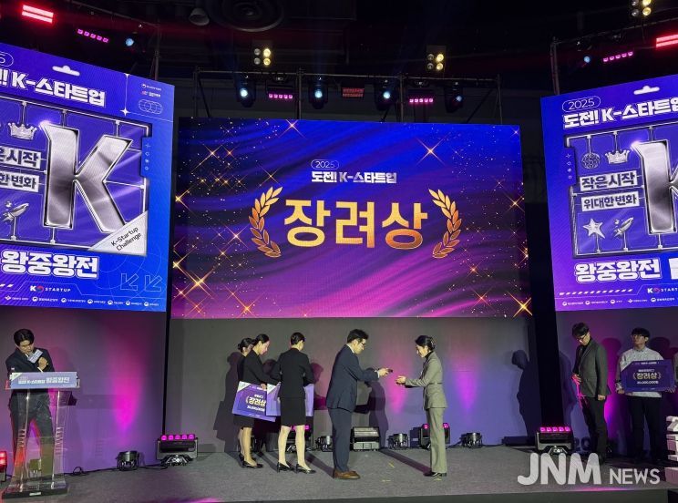 제이앤엠뉴스 | 충남콘텐츠진흥원은 충남 천안 복합형 스타트업파크 입주기업이자 천안시 씨스타(C-STAR) 기업인 ㈜워터베이션이 국내 최대 규모의 창업경진대회인 ‘도전! K-스타트업 2025’ 왕중왕전에서 장려상을 수상했다고 16일 밝혔다.