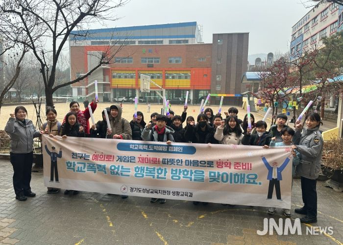 제이앤엠뉴스 | 경기도성남교육지원청은 2025년 12월 16일(화) 성남정자초등학교 정문 및 4층 AI융합실에서 '2025 성남 학교폭력 예방 활동 성과공유회 및 학교폭력·학생도박예방 연합캠페인'을 개최했다.