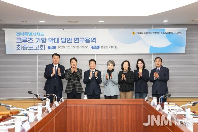 제이앤엠뉴스 | 전북특별자치도의회 의원연구단체인 관광산업 활성화 연구단체(대표의원 김이재 의원)는 15일 도의회 세미나실에서 ‘전북특별자치도 크루즈 활성화 방안 연구’학술용역 최종보고회를 개최했다.