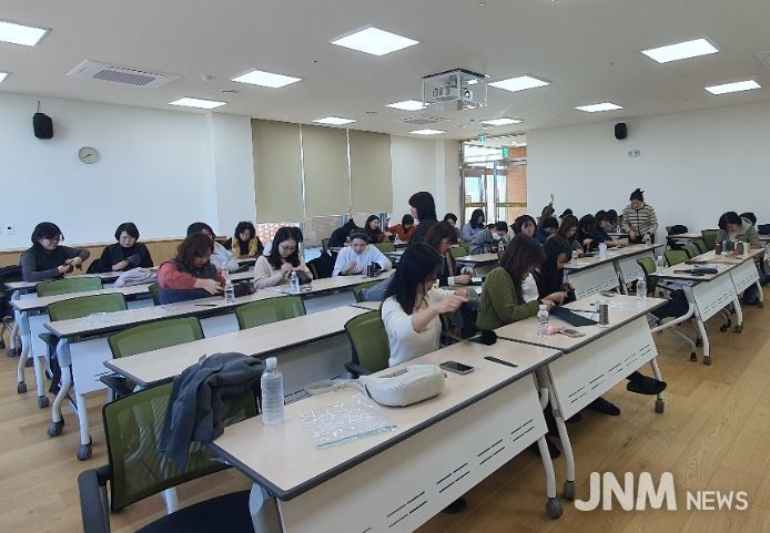 제이앤엠뉴스 | 제주도교육청 제주유아교육진흥원은 16일 회천분원 연수실에서 도내 공사립 유치원 교원 31명을 대상으로 ‘2025년 유치원 가죽공예를 통한 창의성 함양 직무연수’를 운영했다.
