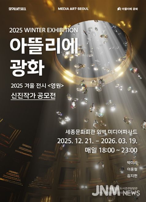 먼저 세종문화회관 정면과 측면부 외벽에 선보이는 대형 미디어파사드 '아뜰리에 광화'는 겨울 시즌을 맞아 ‘신진작가 공모전’ 전시를 선보인다.