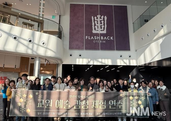제이앤엠뉴스 | 경상북도경주교육지원청은 2025년 12월 17일 오후 3시부터 관내 초·중·고등학교 예술교육 담당교사 50여 명을 대상으로 학교 예술교육 활성화를 위한 교원 예술 감성 체험 연수를 실시했다.