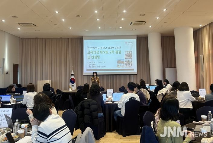 제이앤엠뉴스 | 경북교육청은 17일 경주시에 있는 황룡원에서 도내 중학교 교육과정 지원단 37명과 함께 2026학년도 도내 전 중학교 261교에 대한 교육과정 점검 및 컨설팅 대면 협의회를 개최했다고 밝혔다.