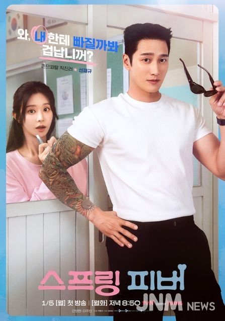 2026년 1월 5일(월) 첫 방송 예정인 tvN 새 월화드라마 ‘스프링 피버’(연출 박원국 /극본 김아정 /기획 CJ ENM STUDIOS /제작 본팩토리)는 찬바람 쌩쌩부는 교사 윤봄(이주빈 분)과 불타는 심장을 가진 남자 선재규(안보현 분)의 얼어붙은 마음도 녹일 봄날의 핫!핑크빛 로맨스다.