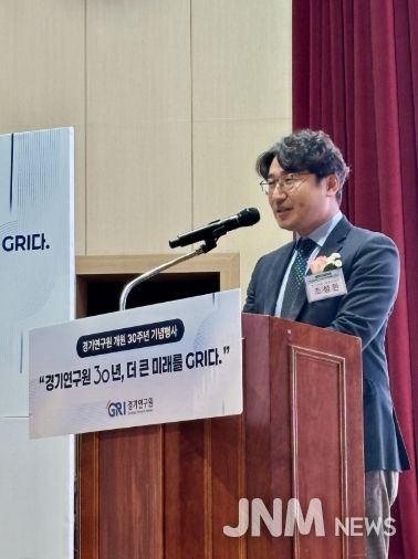 제이앤엠뉴스 | 경기도의회 기획재정위원회 조성환 위원장(더불어민주당, 파주2)은 12월 17일 경기도인재개발원대강당에서 열린 '경기연구원 개원 30주년 기념행사'에 참석해 “경기연구원은 저출생·고령화와 산업구조 전환, 초광역 메가시티로의 재편되는 대전환의 시대 속에서 경기도의 미래를 안내하는 나침반”이라며 연구원의 역할을 높이 평가했다.