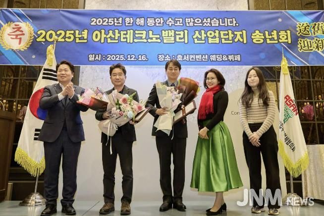 제이앤엠뉴스 | (사)아산테크노밸리 입주기업체협의회는 16일 호서컨벤션에서 2025년 한 해를 마무리하며 기업활동에 수고한 대표 및 임직원을 격려하고 2026년 힘찬 출발을 다짐하는 ‘2025년 아산테크노밸리 일반산업단지 송년회’를 개최했다.