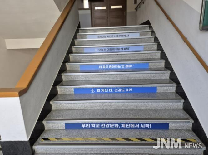 이번 건강계단 조성은 등·하교 및 교내 이동 시 자연스럽게 계단을 이용하도록 유도해 걷기 실천 분위기를 조성하고, 신체활동의 중요성과 자기관리 메시지를 담은 문구를 배치함으로써 계단을 오르며 건강의 가치를 인식할 수 있도록 했다.