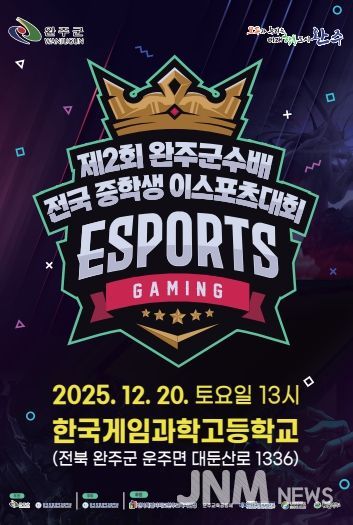 제이앤엠뉴스 | 완주군이 전국 중학생을 대상으로 한 공식 e스포츠 대회를 개최한다.