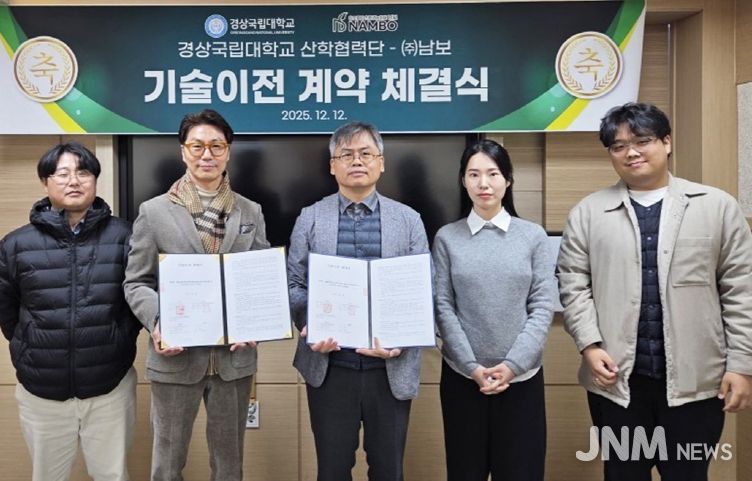 제이앤엠뉴스 | 경상국립대학교 산학협력단(단장 최병근)은 12월 12일 주식회사 남보(대표 박순한)에 ‘살충제 탑재 기능성 바이오차 활용 농업용 비료 및 농자재 제조 방법’과 12월 10일 국가탄소은행(대표 류성기)에 ‘바이오차 활용 고성능 에어필터 제조 방법’ 관련 기술(연구책임자 서동철 농업생명과학대학 환경생명화학과 교수) 2건을 이전했다.
