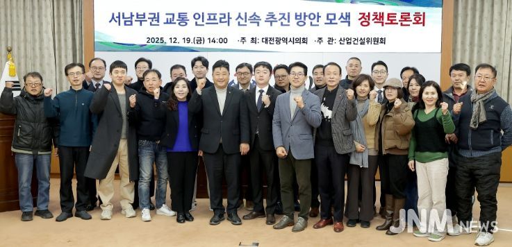 제이앤엠뉴스 | 대전시의회 산업건설위원회는 방진영 의원(더불어민주당, 유성구2)을 좌장으로 19일 대전시의회 소통실에서 '서남부권 교통 인프라 신속 추진 방안 모색 정책토론회'를 개최했다.