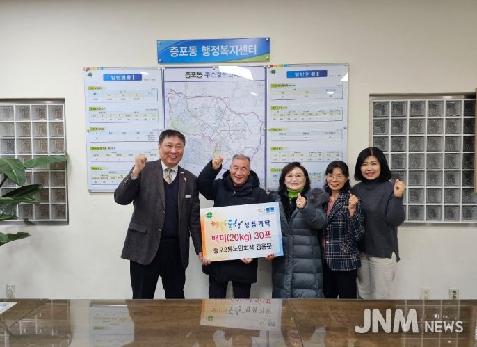 한편, 이날 기탁된 백미 30포는 증포동행정복지센터를 통해 관내 저소득층 가정에 전달될 예정이다.
