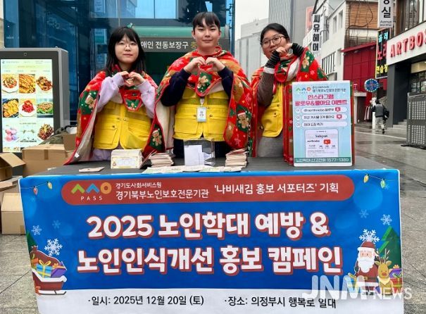 제이앤엠뉴스 | 경기도사회서비스원 경기북부노인보호전문기관(관장 장동현)은 12월 20일, 의정부시 행복로 일대에서 의정부시민을 대상으로 노인학대 예방 및 노인 인식 개선을 위해 시민참여형 홍보 캠페인을 진행했다고 밝혔다.