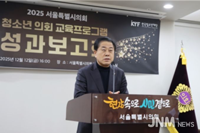 제이앤엠뉴스 | 서울특별시의회 도시안전건설위원회 부위원장으로 활동하고 있는 김용호 의원(국민의힘, 용산1)은 12월 12일 서울시의회 별관 제2대회의실에서 열린 ‘청소년 의회 교육프로그램 성과보고회’에 참석해 축사를 전하며 청소년들의 의정 체험 성과를 격려했다.