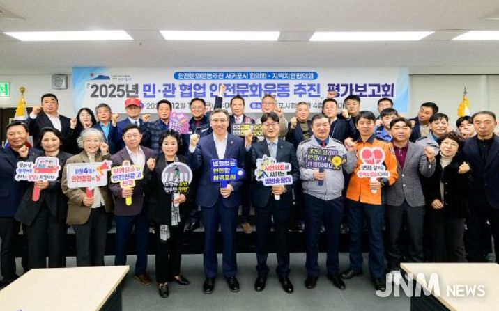 제이앤엠뉴스 | 서귀포시는 12월 19일 10시 시청 별관 4층 별넷마당에서 오순문 서귀포시장을 비롯해 교육지원청‧경찰서‧자치경찰단‧소방서‧해양경찰서 등 유관기관장과 오창훈 시 주민자치위원회협의회장, 시민사회단체장 등 안전문화운동추진 서귀포시협의회 위원 30여 명이 참석한 가운데 ‘2025년도 민‧관협업 안전문화운동 추진 평가보고회’를 개최했다.