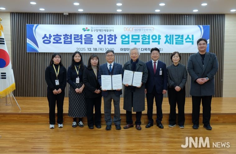 제이앤엠뉴스 | (재)대구동구문화재단(이사장 윤석준)과 동구장애인재활센터(센터장 이종근)는 지난 12월 18일, 지역 장애인의 건강증진과 생활체육 활성화를 위한 업무협약(MOU)을 체결했다.