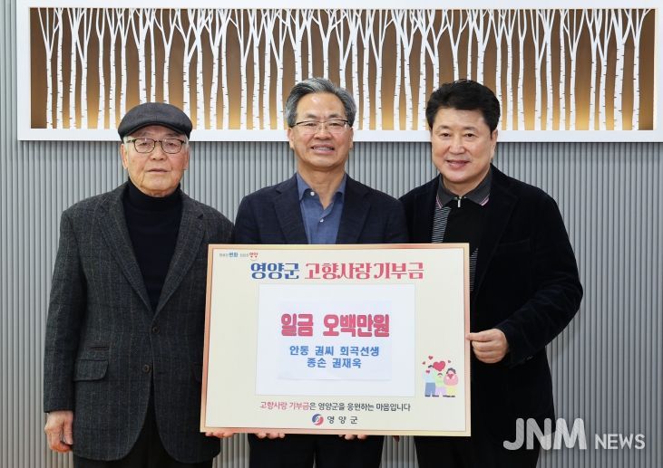 제이앤엠뉴스 | 안동 권씨 회곡 권춘란 선생의 종손인 권재욱(구미 송정유치원 이사장)씨가 12월 22일 영양군을 방문해 고향사랑기부금 500만 원을 기탁했다.