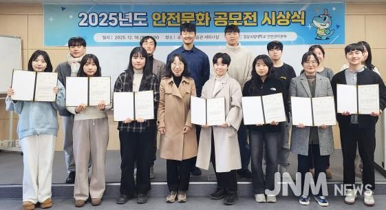제이앤엠뉴스 | 경상국립대학교 안전관리본부는 12월 18일 가좌캠퍼스 공동실험실습관 2층 세미나실에서 ‘2025년 안전문화 공모전 시상식’을 개최했다.