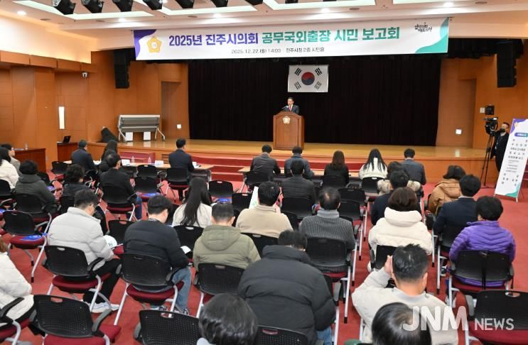 제이앤엠뉴스 | 진주시의회는 22일 시민과 시 관계부서 공무원, 출연·유관기관 관계자 등이 참석한 가운데 ‘2025년 진주시의회 공무국외출장 시민보고회’를 시청 시민홀에서 열고, 해외 연수 성과의 정책 적용 가능성을 시민과 함께 살폈다.