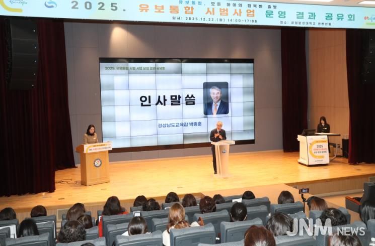 제이앤엠뉴스 | 경상남도교육청은 22일 오후 창원문성대학교 9호관 컨벤션홀에서 ‘2025 유보통합 시범사업 운영 결과 공유회’를 개최했다.