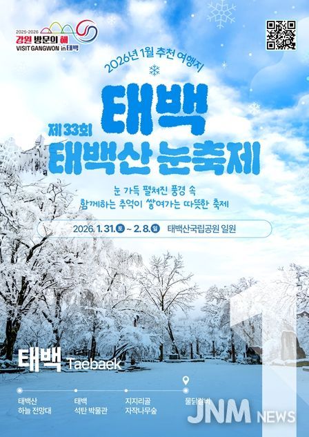 제이앤엠뉴스 | 강원특별자치도와 강원관광재단은 ‘2026 강원 방문의 해’ 1월 추천 여행지로 태백시와 홍천군을 선정하여 대대적인 홍보마케팅을 추진한다고 밝혔다.