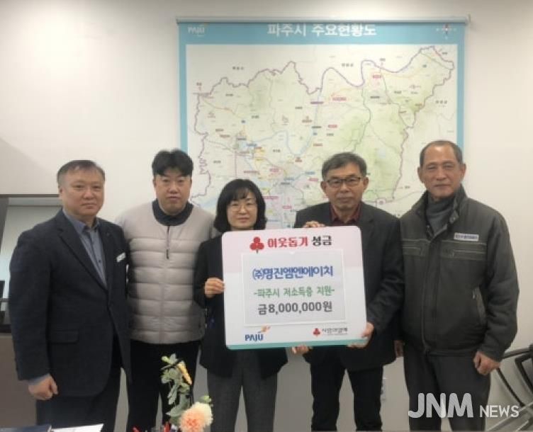 제이앤엠뉴스 | 파주시는 지난 22일 관내 전문건설업체인 ㈜명진엠엔에이치로부터 불우이웃 돕기 성금 800만 원을 기탁 받았다고 밝혔다.