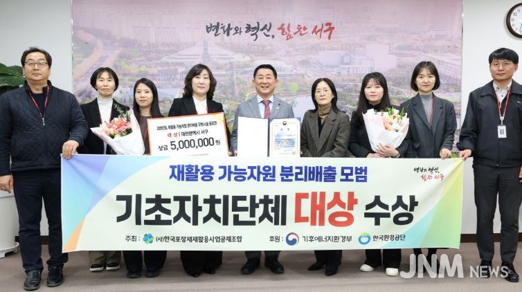 제이앤엠뉴스 | 대전 서구는 22일 ‘2025년 재활용 가능 자원 분리배출 모범시설 공모전’ 기초자치단체 부문에서 대전 자치구 최초로 대상(기후에너지환경부 장관상)을 받았다.