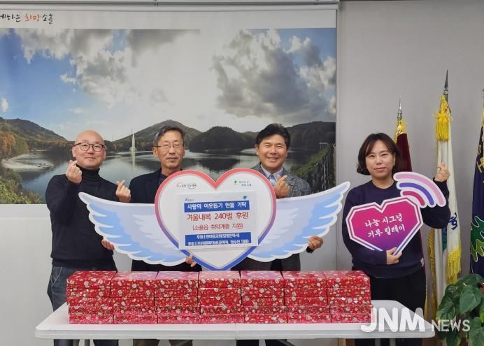 제이앤엠뉴스 | 포천시 소흘읍 행정복지센터는 지난 22일, 한마음교회와 ㈜마른파이브가 지역 내 취약계층을 돕기 위한 겨울 내복 240벌을 기탁했다고 밝혔다.