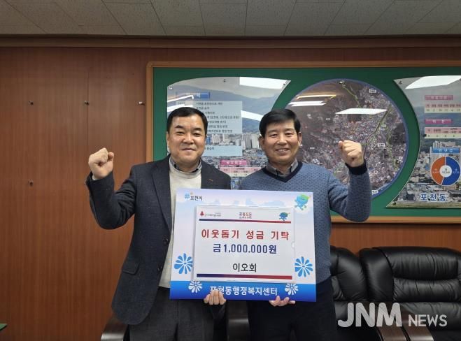 제이앤엠뉴스 | 포천동 행정복지센터는 지난 22일 이오회가 포천동 내 어려운 이웃을 돕기 위해 성금 100만 원을 기탁했다고 밝혔다.