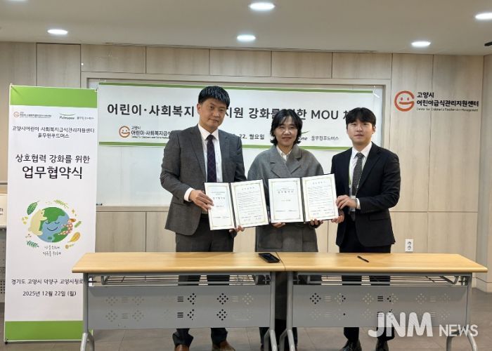 제이앤엠뉴스 | 고양특례시에서 위탁 운영하고 있는 고양시 어린이·사회복지급식관리지원센터는 지난 22일 풀무원 푸드머스와 업무협약(MOU)을 체결하고, 고양시 관내 어린이·사회복지 급식소의 위생·안전 및 영양관리 수준 향상을 위해 상호 협력하기로 했다.