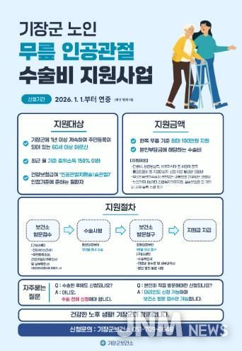 제이앤엠뉴스 | 기장군은 오는 2026년부터 부산시 최초로 ‘어르신 무릎인공관절 수술비 지원사업’을 확대 시행한다고 23일 밝혔다.