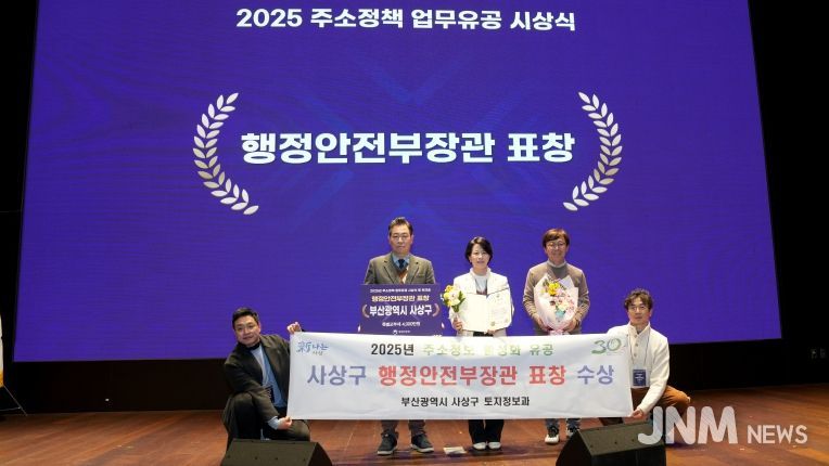 제이앤엠뉴스 | 부산 사상구는 지난 18일 행정안전부 주관 ‘2025년 주소정책 성과공유 워크숍’에서 주소정보 업무평가 우수기관으로 선정돼 행정안전부 장관 표창을 수상하고, 특별교부세 4천만 원을 확보했다고 밝혔다.
