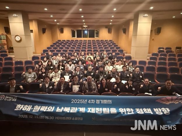제이앤엠뉴스 | 민주평화통일자문회의 울산동구협의회(회장 장예식)는 12월 23일 오후 3시 30분 HD아트센터 소공연장에서 자문위원 등 50여 명이 참석한 가운데 ‘화해·협력의 남북 관계 재정립을 위한 정책 방향’을 주제로 2025년 4차 정기 회의를 개최했다.