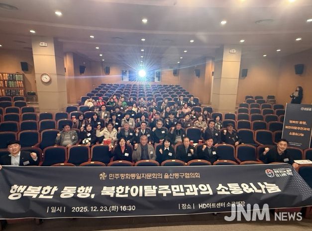 제이앤엠뉴스 | 민주평화통일자문회의 울산동구협의회(회장 장예식)는 12월 23일 오후 4시 30분 HD아트센터 소공연장에서 북한이탈주민의 안정적인 지역 사회 정착을 지원하기 위하여 ‘북한이탈주민과의 소통 나눔’ 행사를 개최했다.