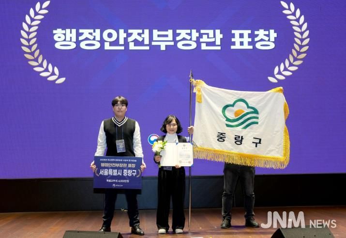 제이앤엠뉴스 | 중랑구가 행정안전부 주관 ‘2025년 주소 정책 업무 유공’ 평가에서 서울시 자치구 중 유일하게 우수기관으로 선정돼 행정안전부 장관 표창을 받고, 특별교부세 4,000만 원을 확보하는 성과를 거뒀다.