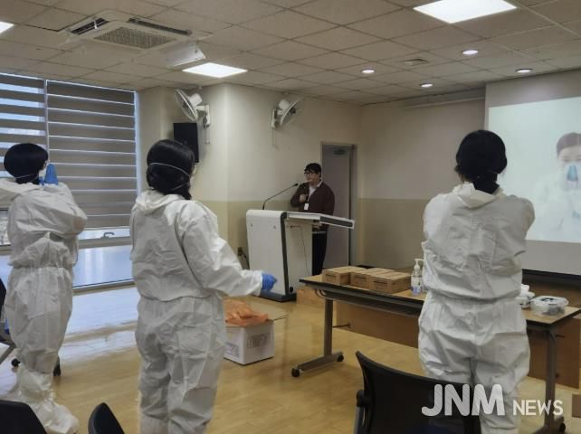 제이앤엠뉴스 | 동두천시보건소는 지난 12월 22일 직원들을 대상으로 감염병 발생 상황에 대비한 개인보호구(Level D) 착·탈의 실습 교육을 실시했다.
