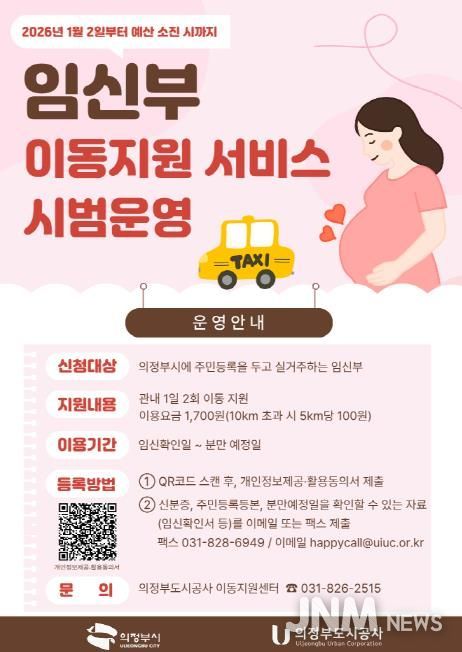 제이앤엠뉴스 | 의정부시가 임신부의 이동 불편을 해소하고 안전한 외출을 지원하기 위해 2026년 1월 2일부터 ‘임신부 이동지원 서비스’를 시범운영한다.