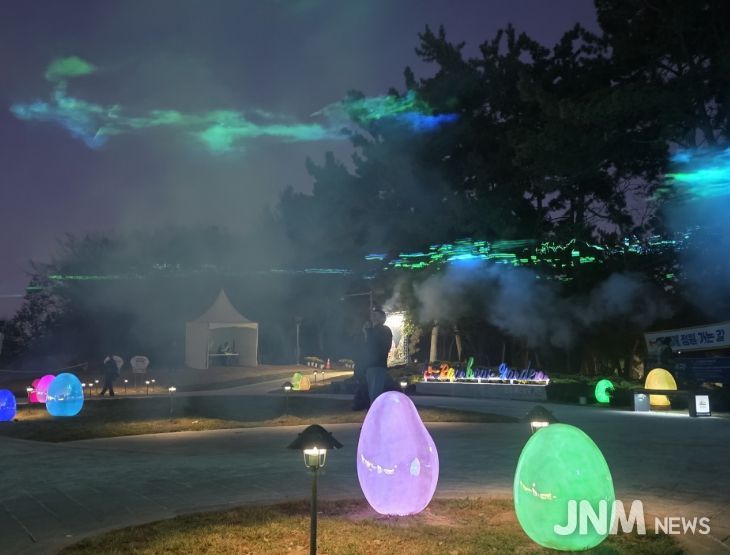 제이앤엠뉴스 | 익산시가 연말연시를 맞아 신흥공원 오로라광장에서 야간 오로라 레이저 쇼를 운영한다.