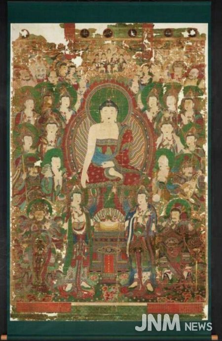 제이앤엠뉴스 | 국가유산청은 현재 전하는 경수연도(장수 축하·기원 잔치인 경수연을 그린 그림) 중 유일한 원본인 '신중엄경수도첩'을 비롯해 '영산회상도', '묘법연화경 권3', '구례 화엄사 동종', '고려 수월관음보살도', '‘영축사’명 영산회상도'까지 총 6건을 국가지정문화유산 보물로 각각 지정했다.