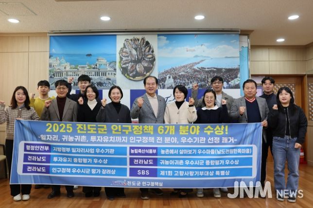 제이앤엠뉴스 | 진도군이 2025년 한 해 동안 인구정책 6개 분야에서 잇따라 우수기관으로 선정되며, 인구정책 추진 성과를 대외적으로 인정받았다.